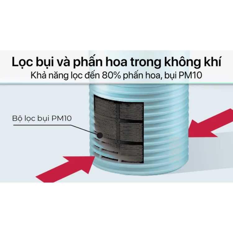 Lọc đến 80% phấn hoa, bụi PM10 hoặc bụi lớn -