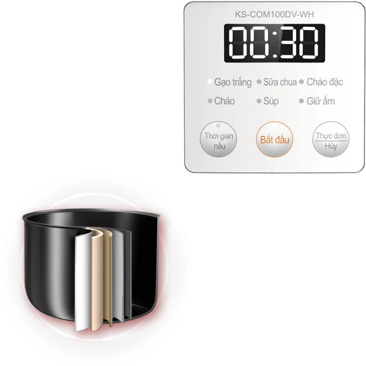– Vỏ nồi cơm : Nhựa– Xửng hấp : Nhựa